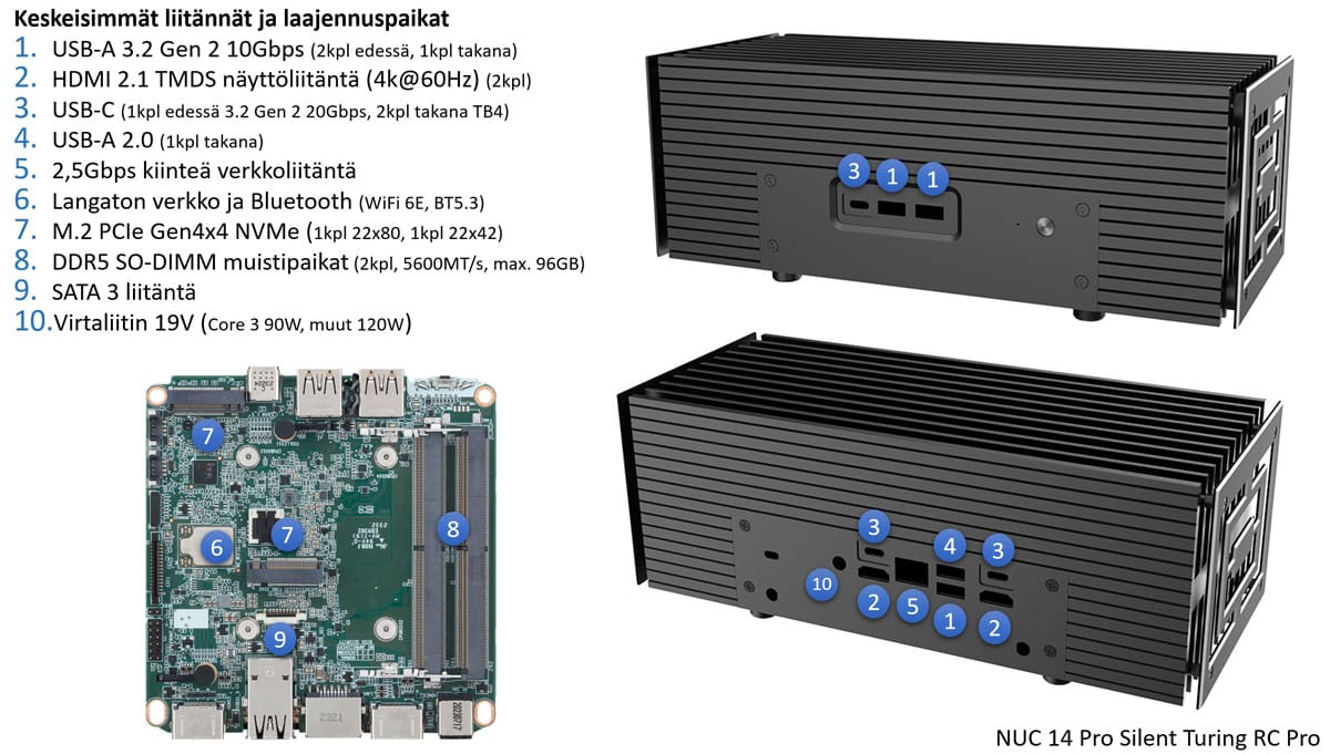| Turing RC Pro | 40 W | Kyllä | Core 3 / Ultra 5 / Ultra 7 | Kyllä | Ei |