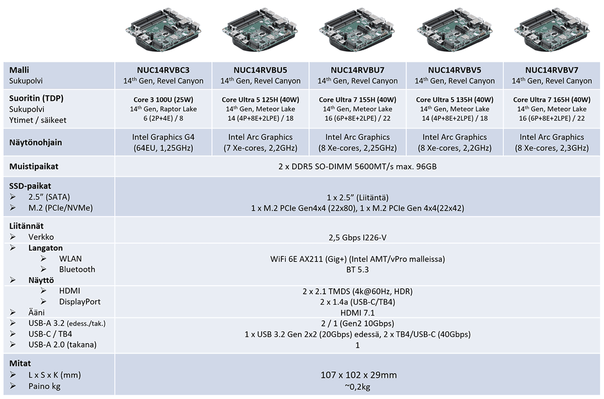 | Plato RC | 28 W | Kyllä | Core 3 (Ultra 5 / Ultra 7 rajoitettu) | Ei | Kyllä |